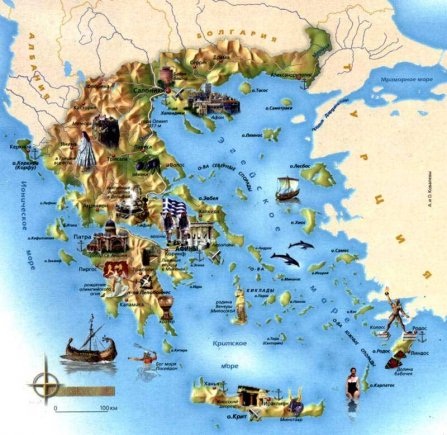 Греция – государство в Юго-Восточной Европе, расположена в южной части Балканского полуострова и на прилегающих островах Ионического, Средиземного и Эгейского морей. Примерно 2/3 территории занимают средневысотные горы и плоскогорья. Берега сильно расчленены.